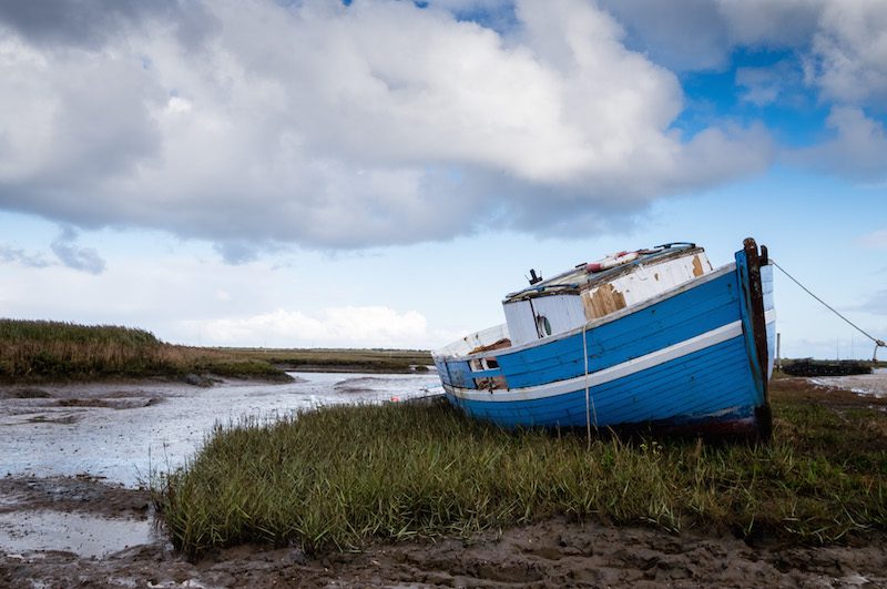 For some reason I’m always drawn to photographing boats, often singly if I can isolate them in my compositions. I love the wear and tear they show; it has a similar resonance for me as the derelict places that I visit. The skies in Norfolk are huge and dramatic rather than monotonous grey or bright blue and I hope that you will like the skies in the images included here.